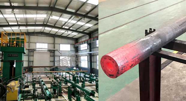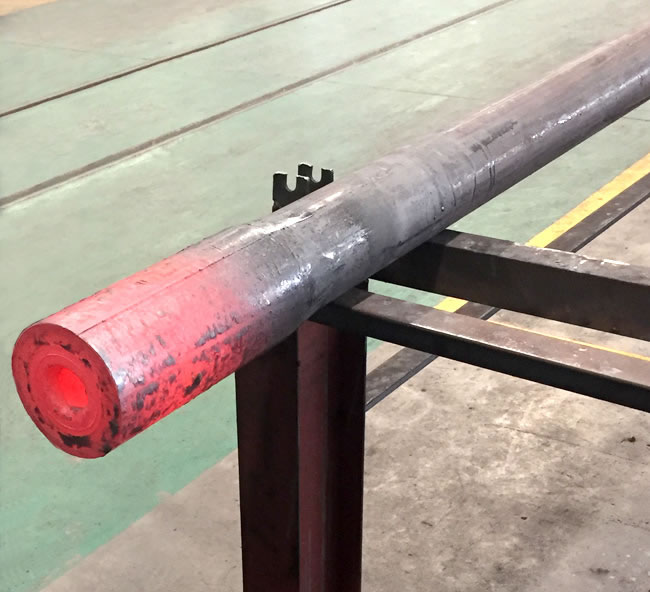 管端加厚機是我公司針對石油鉆桿、油管的加厚工藝研發的新型特種設備,管端加厚的目的主要是為了保證鋼管在管端車加工截面處的強度,鋼管加厚類型有外加厚、內加厚、內外加厚三種工藝。加厚機組有加厚機、輔機及加熱系統等組成,即對鋼管進行橫向運輸、加熱及端部加厚。